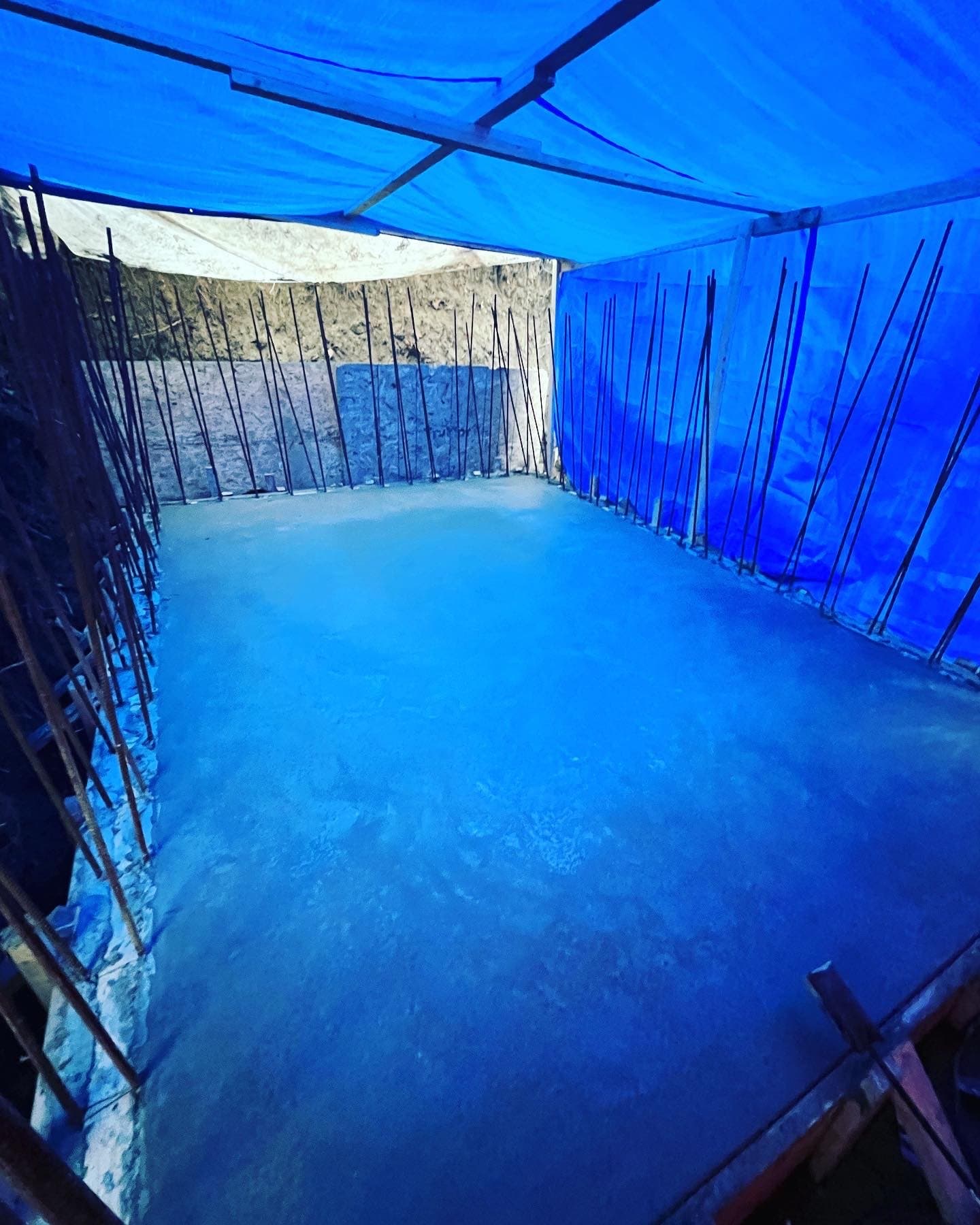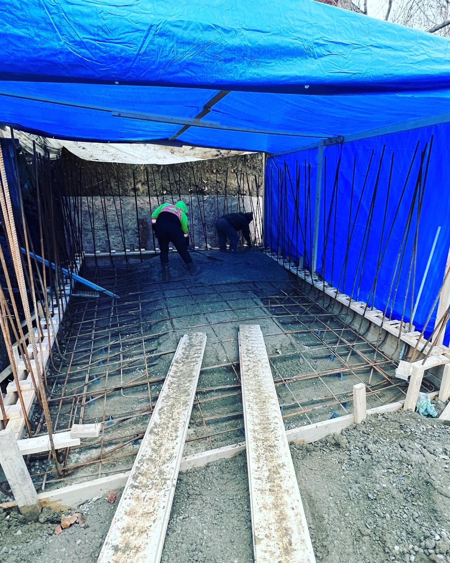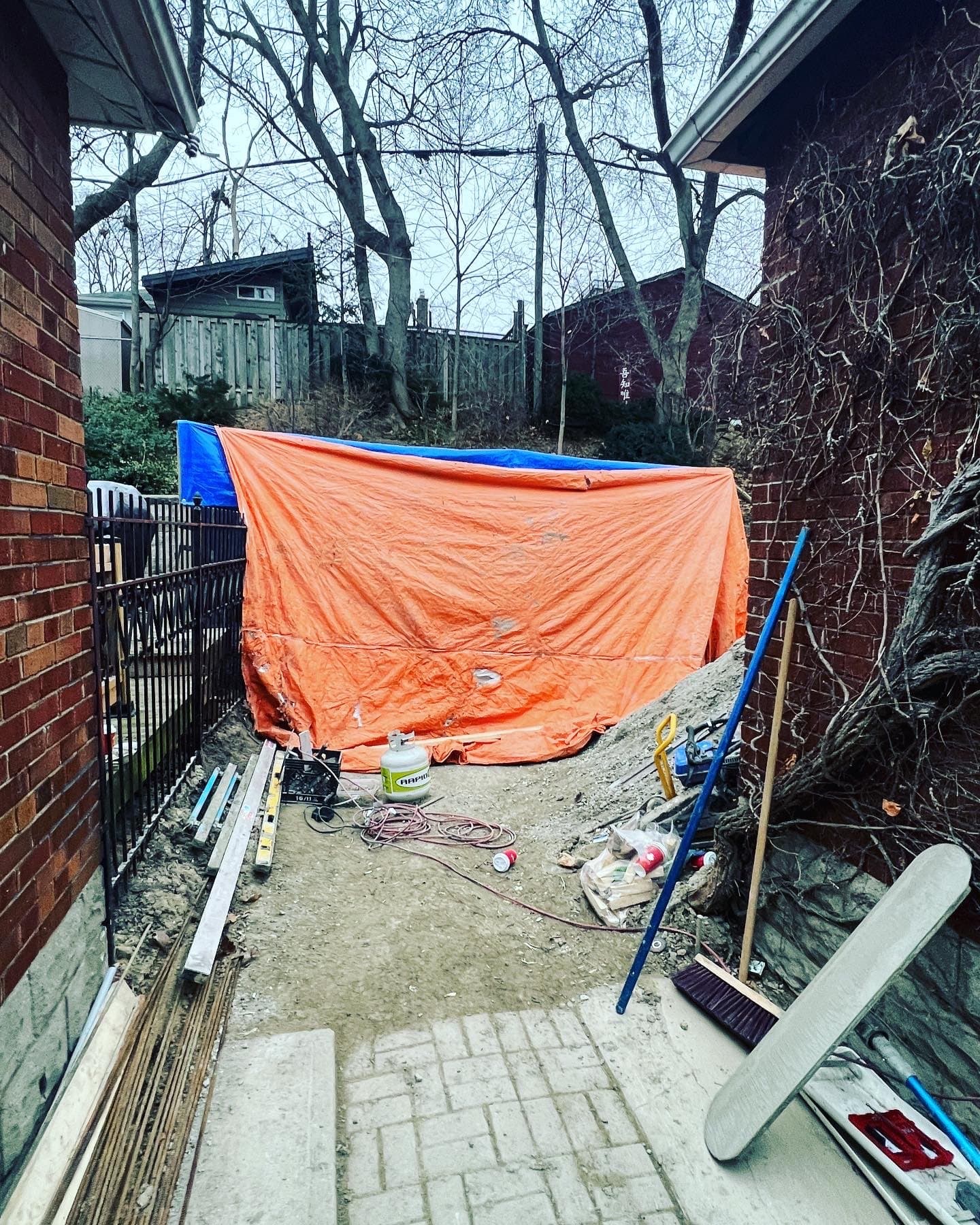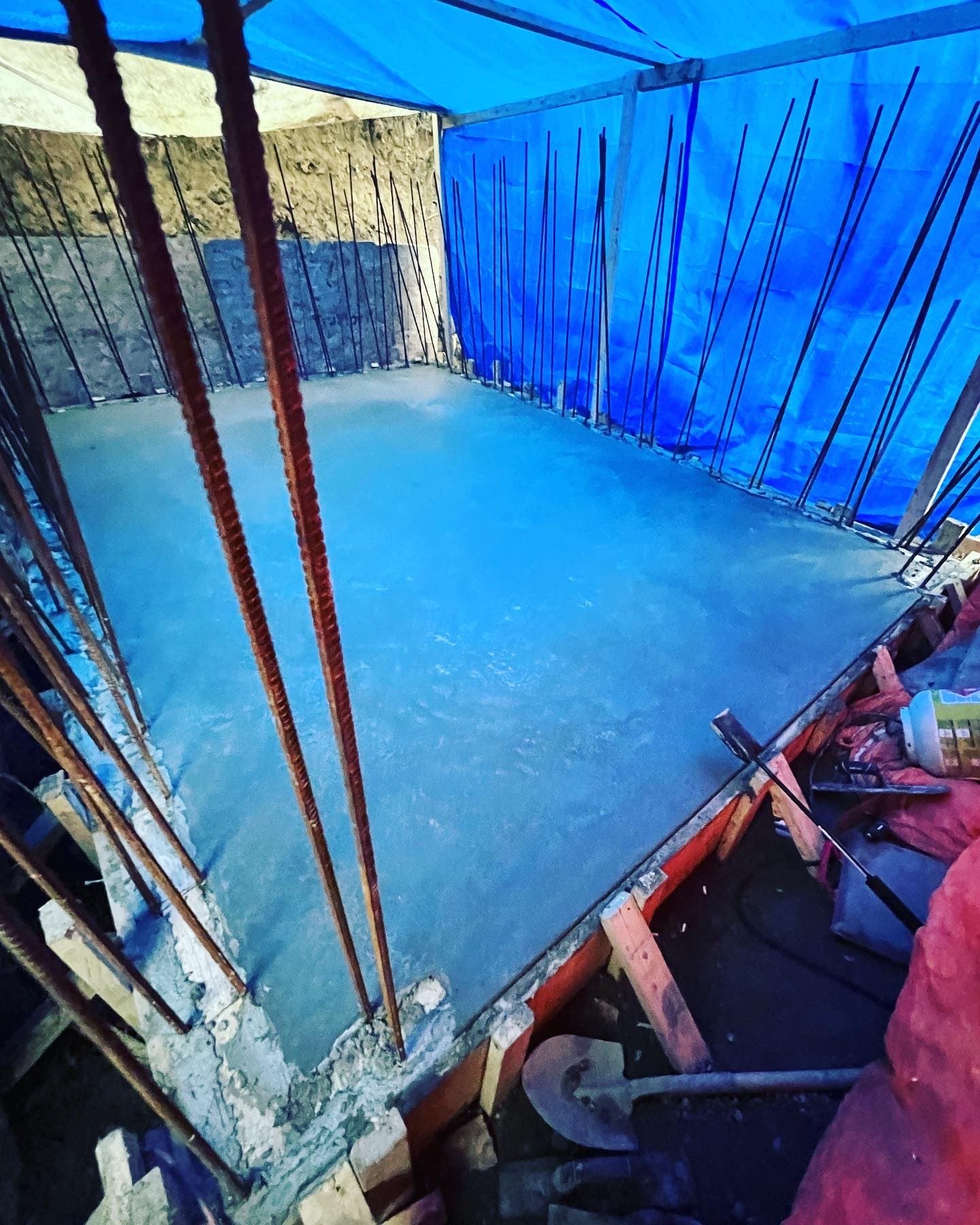A relatively small, yet intricate build. The steep rear elevation added complexity, requiring heavy structural input/design and particular care with the execution on site. Steel reinforced stepped concrete foundation walls/footings along with a structural slab 12in thick provided a solid base to house the client's classic car. The architect opted for an off-angle wall & roof design to create visual interest. This combined with the 'Pacific Turquoise' standing seam metal w/ varied widths and staggered joints delivered the unique overall aesthetic that was envisioned. Note the custom fabricated and colour matched eaves & downspouts, nothing standard on this build!