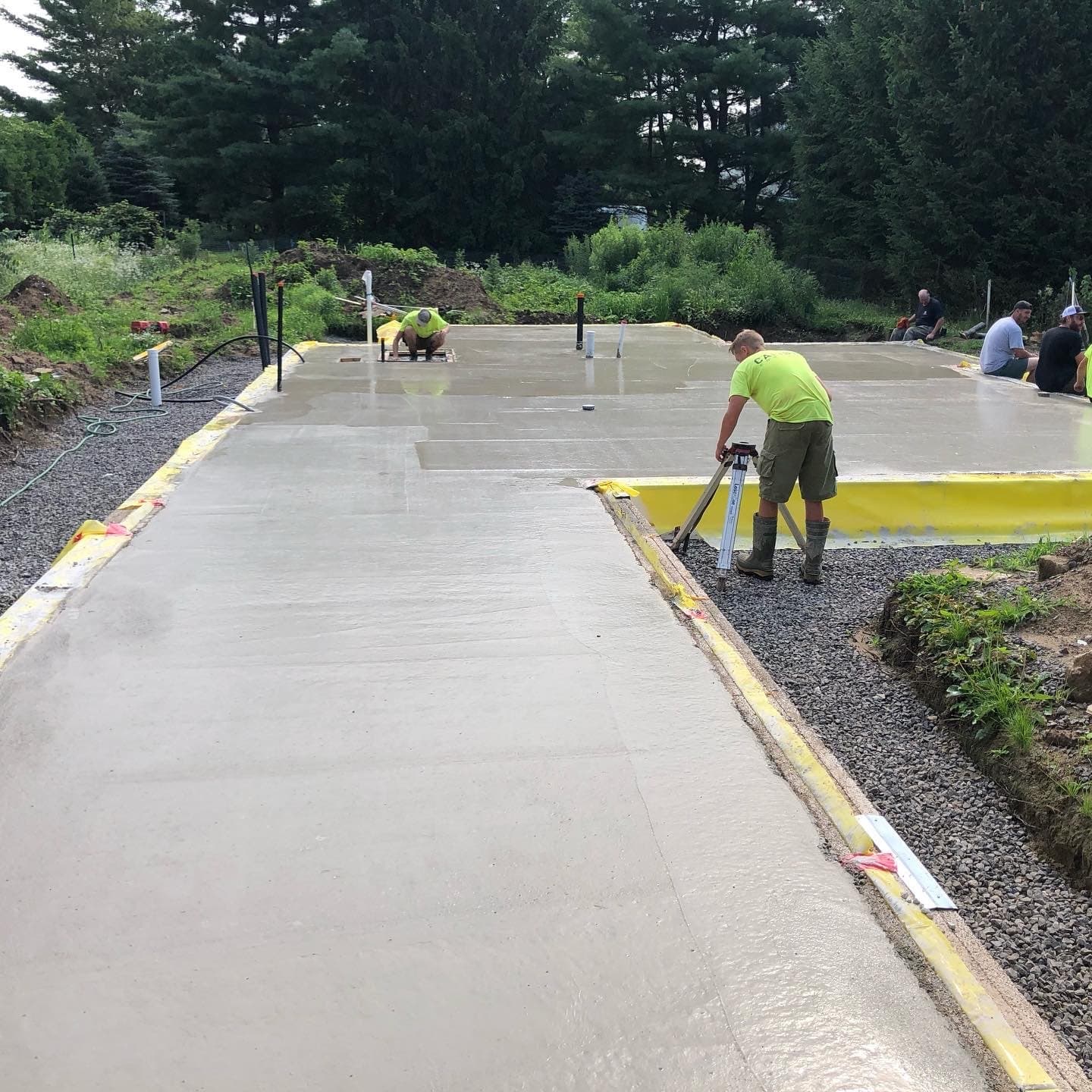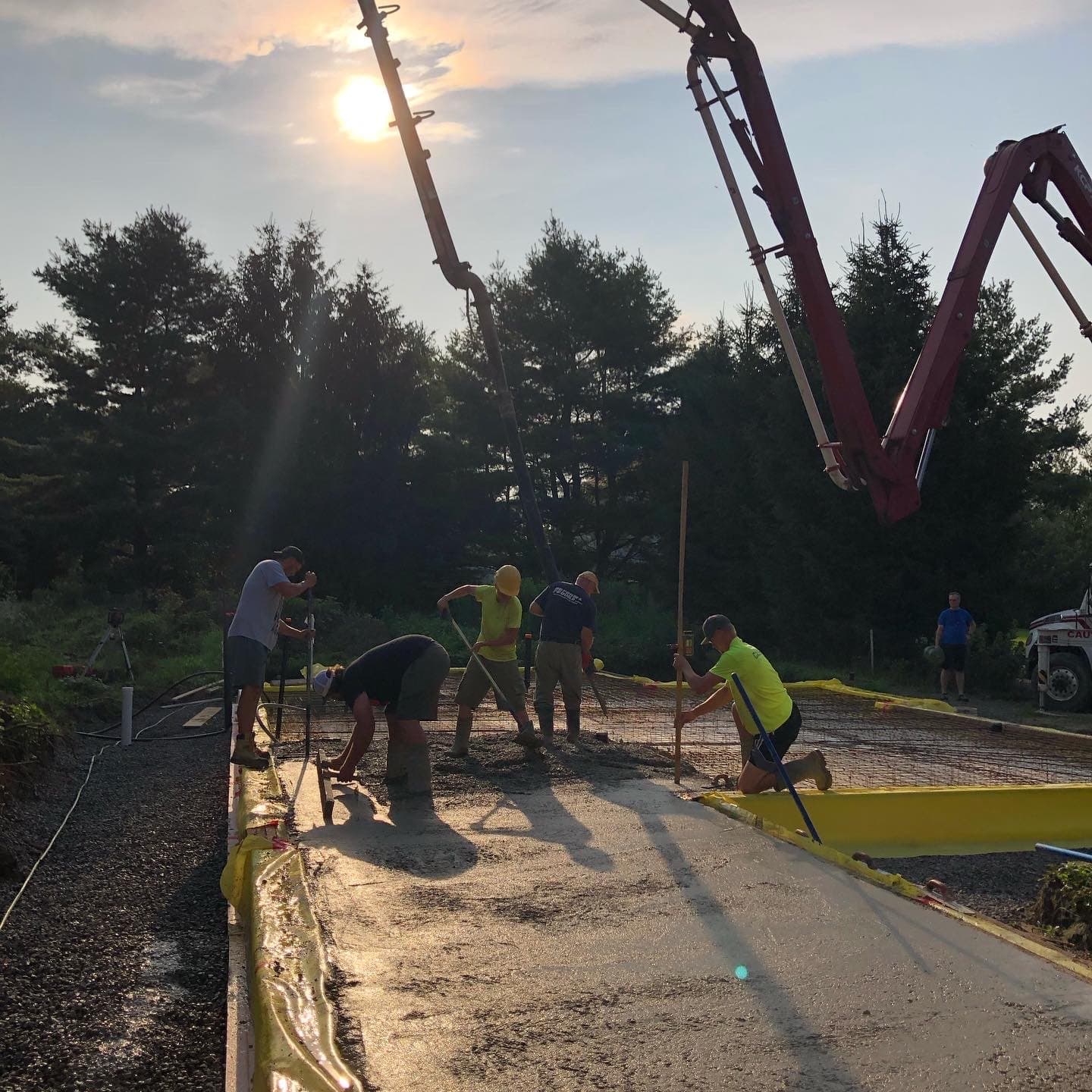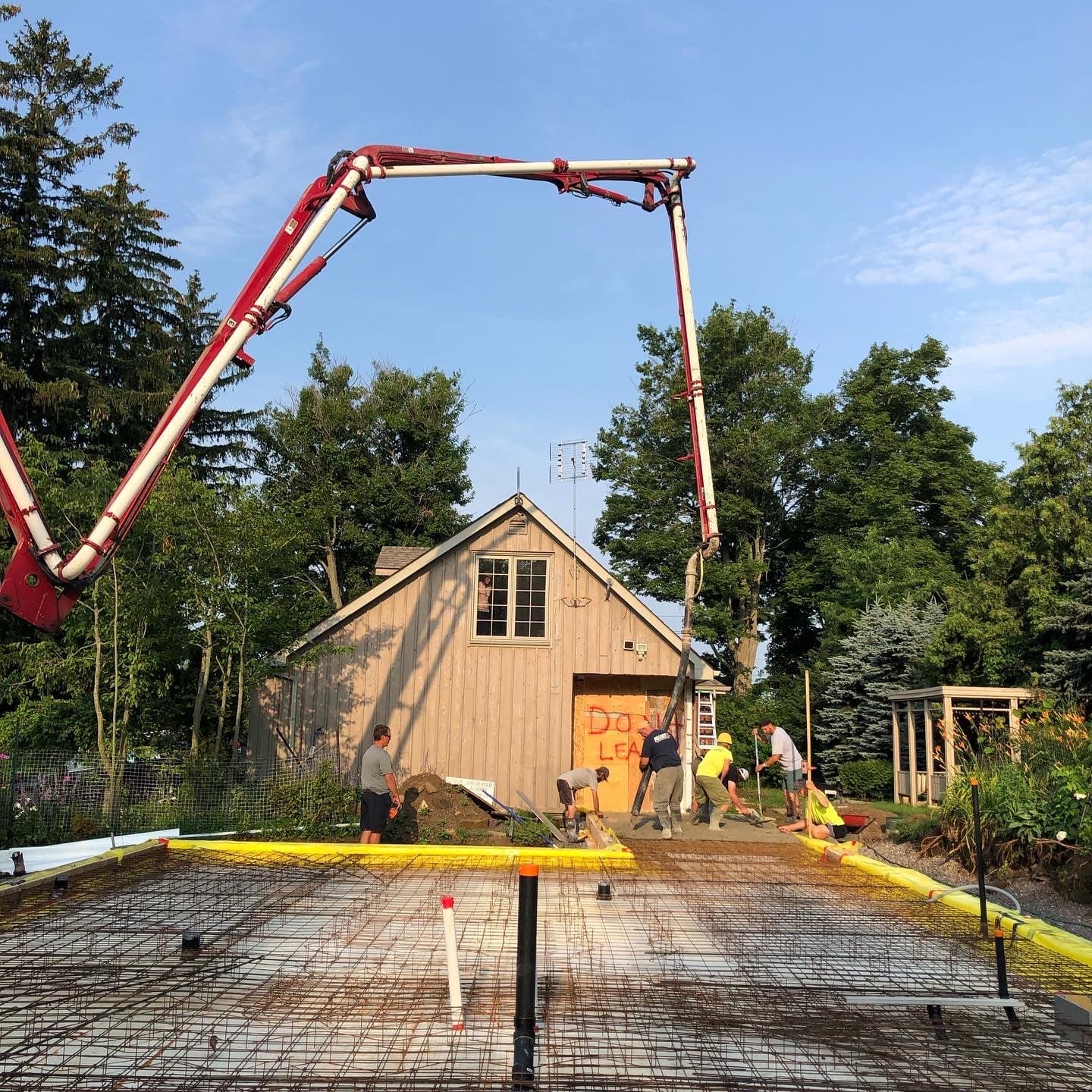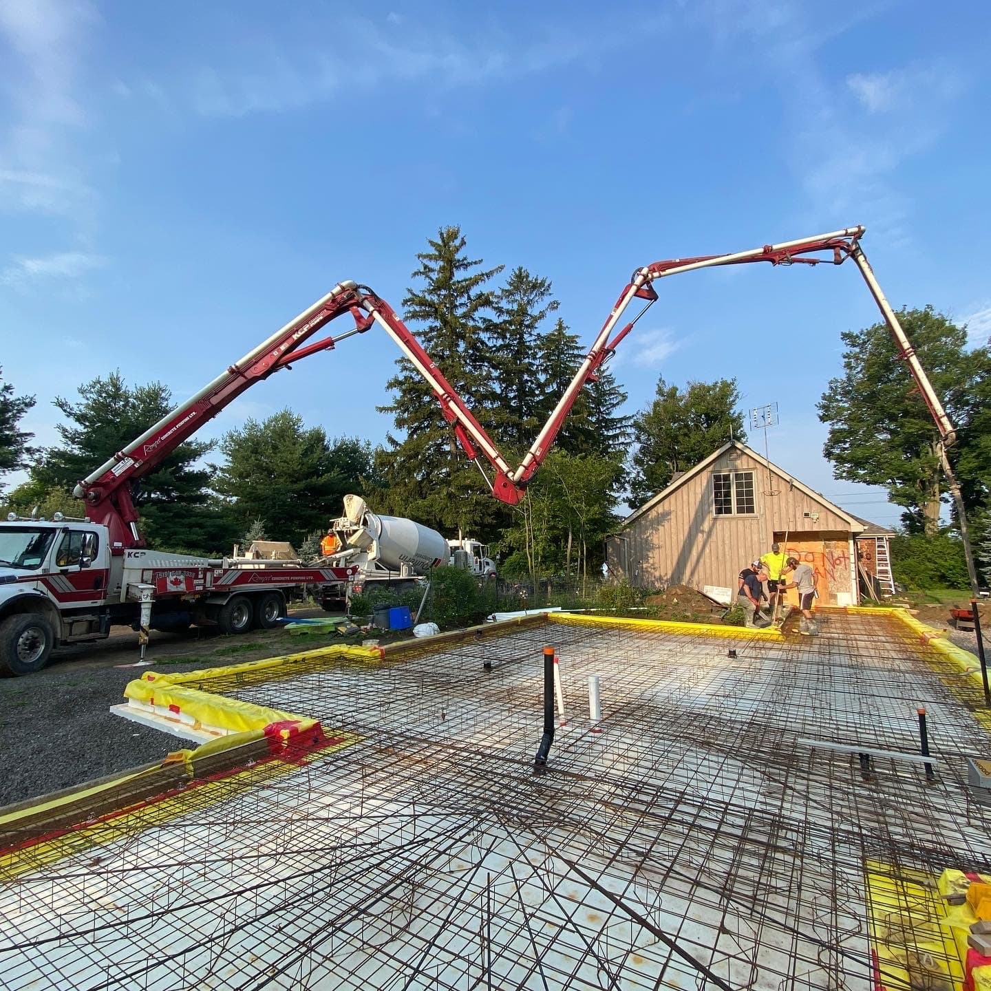 The owner of this Century old Farmhouse is a conservationist and thus was interested in building using Passive House techniques for this large addition. Specialty Energy & Building Science Consultants, Architects, and Engineers all collaborated to integrate the energy conserving components with a unique, modern design. Hyper insulated structural slab w/ full height formed in place concrete walls provide a beautiful interior finish and act as a thermal regulator for the building. Strategically located triple glazed windows not only look great, but are placed in mind of solar trajectory at different times of the year. Heat pump, ERV and separate HWT comprise the buildings mechanical systems w/ the addition of a Scandinavian wood burning fireplace. Huge glazed on-site fibreglass window walls make up the corridor connection to the existing dwelling. Custom milled clear pine has been applied as a ceiling covering, which dramatically warms the space in contrast to the architectural concrete surfaces. Cedar details in the washroom along with microcement wall covering and European fixtures carry through the natural & minimalist theme. W Construction is big fan of Big Ass Fans (look them up!) and so is this client, evident in the selection for the 17ft Great Room ceiling.